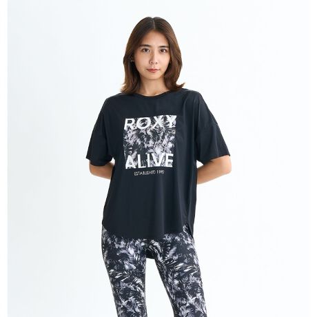[型番:86216397]ワイドシルエットのドロップショルダーTシャツ。前後で着丈差をつけたラウンドヘムで、後ろはお尻が隠れる丈感に仕上げました。フロントにはボックス型の柄グラフィックにメッセージロゴを重ねてプリント。同柄のレギンスとセットアップで着用するのはもちろん、シンプルなデザインなのでどんなボトムスとも相性抜群です。速乾・UVカット機能付き。水陸両用。【RST254522】