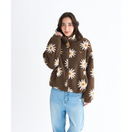 フラワー柄がアクセントになった、ショート丈のボアジャケット。中綿を入れ、裏地はキルトステッチで仕上げました。ダブルジップの仕様で、オリジナルのロゴ入りスライダーもポイントに。裾にはアジャスター付きのゴム仕様にしているので、シルエットの変化も楽しめます。胸元にはROXYハートの刺?を、左裾にはオリジナルのネームを叩きつけました。ショートパンツなどを合わせて、ヘルシーに着てほしい一着です。