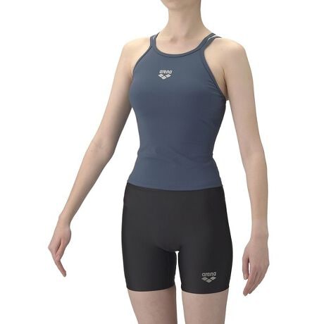 「これからプールに行ってみようかな?」や「プールでリフレッシュしたいな」と思っているユーザーにおすすめしたいフィットネスセパレート水着。トップスは、肌あたりのいいリブ素材を使用し、バックスタイルはアリーナ独自の「ダブルストラップ」搭載。肩紐を「ダブルストラップ」にすることで1点にかかる圧を2点に分散させ、肩に感じる負担を減らし、よりよい着心地を実現。「差し込みパッド」は取り外し可能で、パッドポケット内に収まるため脱ぎ着がしやすく、水中でもしっかりフィットする安心感のある仕様。ボトムスは、ハイウエスト設計で、気になるお腹・腰回りをすっきり、しっかりカバー(※ウエスト紐は付いておりません)。トップスとボトムスをつなぎとめてくれるスナップボタンが付いているため、水中でもめくれ上がりにくい。アリーナロゴをプリントしたシンプルなデザインが着用しやすく、手持ちのアイテムとも組み合わせやすい便利な一枚。お好みに合わせて選べる3カラー展開。