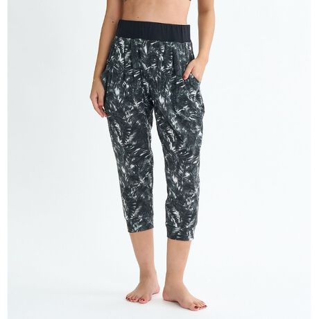 [型番:86216215]薄手素材でゆるっとしたシルエットの膝下丈ヨガパンツ。シーズンプリントのモノトーンリーフ柄を加えたラインナップです。ゆったりとしたシルエットはヒップが響かず、ボディラインを気にせずにワークアウトが可能です。ウエストには内紐付きで、サイズ調整自在です。左裾にはブランドマークのリフレクターを施しました。速乾機能付き。【RPT254532】