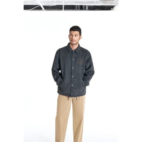 [型番:86286978]しっかりとしたダブルフェイスメルトン生地を使用したコーチジャケット。表側はメルトン、裏側は天竺編みのダブルフェイス生地が魅力。バックにBILLABONGのロゴ刺繍をレイアウトしました。【BF012752BLK】