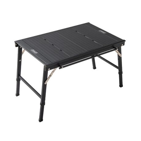 デュアルガスバーナーストーブがセット可能、2段階高さ調節も可能な薄型コンパクトテーブル