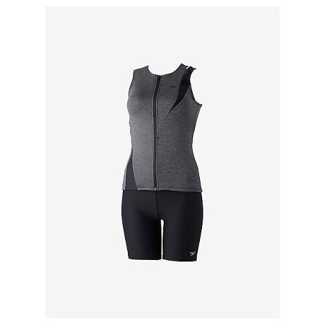 フィットネススイムウエアカテゴリー「Pool Athletics(プール・アスレティクス)」より、水中でのアクティビティを楽しむ方やはじめてプールでエクササイズを始める方におすすめの「do FIT(ドゥ・フィット)」シリーズ。トップスはソフトなストレッチ性が特徴の環境配慮型素材「Heather Stretch ECO(ヘザー・ストレッチ・エコ)」を採用。アクティビティに集中できる露出控えめのデザイン。差し込みタイプのカップ付きで、これ一枚で完結。着脱もカンタンです。ボトムスは透けにくく安心感のある厚みと柔らかな風合いの環境配慮型素材「ENDURANCE ECO(エンデュランス・エコ)」を採用。足さばきのよい3.5分丈。ホールド感のあるハイウエスト仕様です。UVケア(UPF15-30、紫外線カット率85以上)機能付き。また、トップスに別のロングボトムスを合わせたり、ボトムスの上からショートパンツをはいたり、着回しも自由。シーンや気分に合わせてコーディネートをお楽しみください。