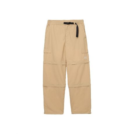 アウトドアスタイルからタウンユースまで、幅広いシーンで活躍するカーゴパンツ。多彩な着こなしができる、遊び心のあるアイテムです。グログラン生地にシワ加工を施すことで、クラシカルなマウンテンウエアのような自然な風合いに仕上げました。はっ水加工を施しているため、多少の雨なら対応可能です。3段階で丈を変えられるコンバーチブル仕様で、フルレングス、7分丈、ショーツとして着用でき、さまざまなシーンで着こなしを変えられます。どの丈でもスマートに装えるリラックスストレートシルエットで、裾にはドローコードを配置。レッグ部分の連結に使うファスナーは、スムーズに組み合わせできるよう、左右の色を変えています。フラップ付きのカーゴポケットは、脚の両サイドはもちろん、腰裏にも付けられる仕様。両サイドの取り付け部分は、ポケットを付けないときはデイジーチェーンとして重宝します。環境への負荷に配慮して、素材の一部にリサイクル糸を使用しています。