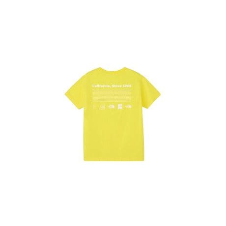 [型番:87188371]THE NORTH FACEの歴代のロゴを年代順に並べ、ブランドの歴史を記したグラフィックを背面に大きくあしらった半袖Tシャツ・やわらかくしなやかな肌触りのニット生地・親子でお揃いのコーディネートができる大人共通デザイン・リサイクルポリエステルとオーガニックコットンを混紡したニット・左胸にロゴプリント・ライフスタイル・アウトドア【NTJ32648 TL】