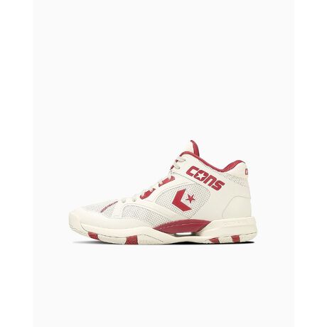 CONVERSE BASKETBALLのパフォーマンスモデル。アーカイブのACCELERATORを現代の技術でアップデート。ソールの上部に配置されている新構造シャンクにより足との一体性を高め、ミッドカットにより足首までしっかりホールドすることで、俊敏なフットワークをサポート。ミッドソールには軽量性とクッション性に優れた中空ミッドソールを採用。アウトソールはフットワークのサポートを目的とした星形の屈曲溝を配置。コンバースらしいクラシック感のあるオフホワイト/ブラック、オフホワイト/レッドの2カラー展開。
