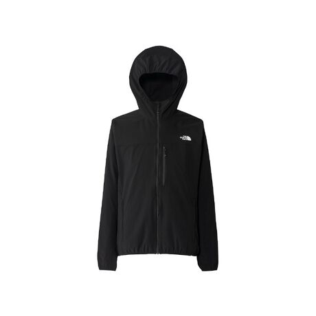 高いストレッチ性で身体の動きにスムーズに追従する、薄手のソフトシェルジャケット・ストレッチ性の高いソフトシェル生地・立体裁断・フードや袖口、裾はシンプルなバインダー仕様・ナイロンとポリウレタンをブレンドしたソフトシェル生地・はっ水加工・顔まわりの視界を妨げにくい構造のフード・左胸にファスナーポケット・左右サイドにファスナーポケット・ミドラーの上から織りやすい、ややワイドシルエット・アウトドア、登山、ハイキング、クライミングなど