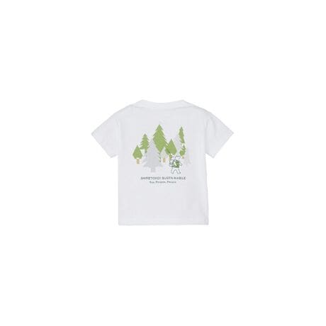 北海道斜里町の観光シンボルキャラクター、知床トコさんのグラフィックを配置した半袖Tシャツのベビーモデル ・釣竿をさし、大きなパックを背負ったトコさんが知床の森の中を歩く様子をイメージしたグラフィックを背面に配置・やわらかくしなやかな肌触りのニット生地 ・リサイクルポリエステルとオーガニックコットンを混紡した速乾性のあるニット ・左胸にロゴプリント・UVケア(UPF15-30、紫外線カット率85以上)機能付き・着脱しやすいように左肩ドットボタン仕様 ・ライフスタイル・アウトドア
