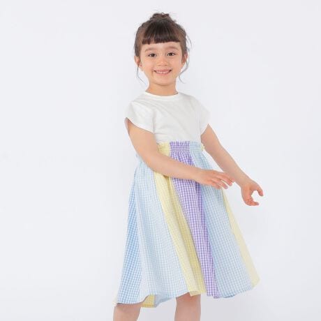 オフホワイトは、パステルカラーのギンガムチェックを贅沢に使ったクレイジーパターンでポップな一枚に!