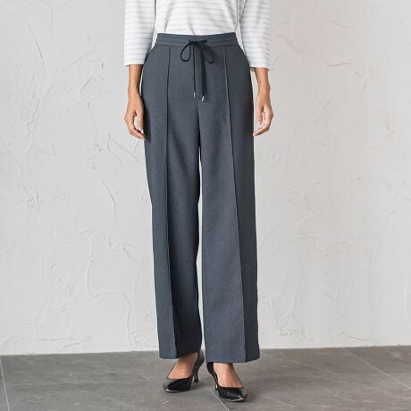 見た目はカジュアルながら、やわらかな落ち感があり、きれいめにも着こなせる一本です。