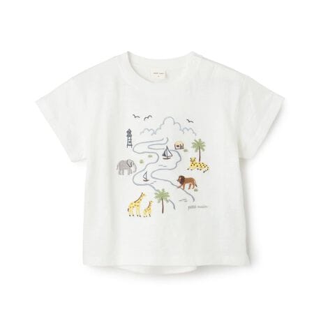 大胆なサファリ刺しゅうが目を引く半袖Tシャツです。動物たちが自然で暮らす様子をデザインしました。異素材の切り替えで後ろ身頃にゆとりを持たせ、快適な着心地を実現。さまざまなボトムスと合わせやすく、デイリーに着回せます。内側にお名前を記入できるタグつき。