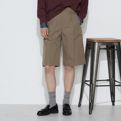 膝がしっかり隠れる丈感ときれいめな素材で、カジュアルなハーフパンツを大人の女性でも楽しめるアイテムに仕上げています。