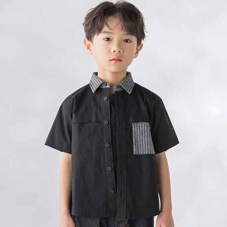 1枚でこなれ感UP。ストライプが映える男の子用大人顔シャツ。