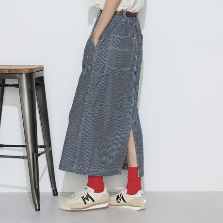 同素材のカバーオール(商品番号:21-04VO04-206)とセットアップでオシャレに決まり、長いシーズン単品スカートとして活躍間違いなしです。