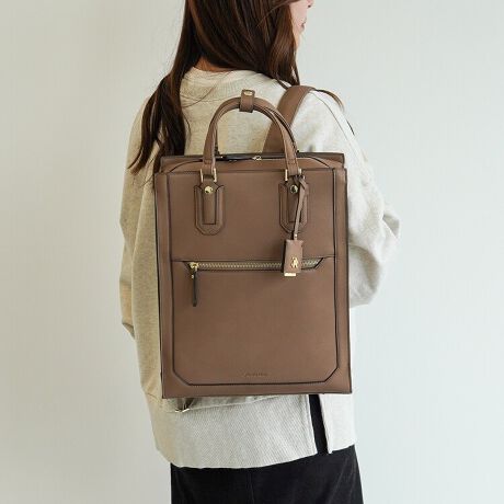 ハンドバッグのように持てるクラシカルなスクエアリュック。