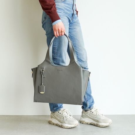 柔らかなラウンド感とシャープな直線が融合した上品なくり手のトートバッグ。