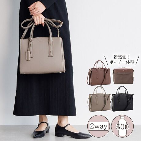 <b>バッグ&ポーチ一体型の2wayハンドバッグ</b><br>