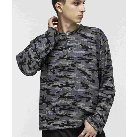 ILL'S カモ総柄ヘンリーネックサーマルロンT