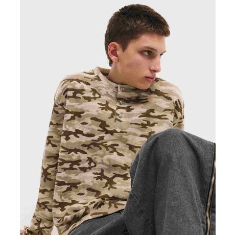ILL'S カモ総柄ヘンリーネックサーマルロンT