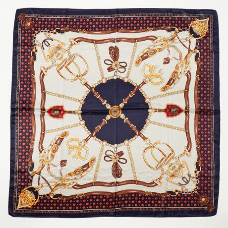 [型番:28214]ビンテージライク柄PEサテンスカーフベルト柄チェーン柄scarf シルクタッチ 88x88cm 大判