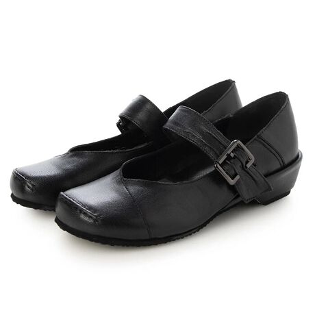 【Le son/ル ソン】本革バレエシューズゴートレザーオブリークトゥワンベルトウェジバレエパンプス