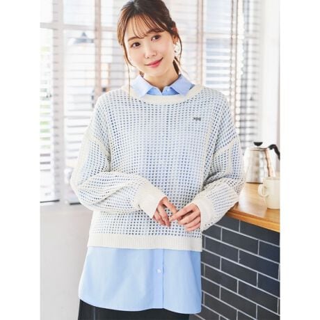 [型番:26560781999]季節感あふれる軽やかなニットプルオーバー。ラメを織り込んだメッシュ編みと、ゆったりとしたドルマンシルエットが抜け感のある印象を演出。タンクトップやキャミソールに重ねて大人カジュアルに、ナロースカートやワイドパンツと合わせてきれいめにも楽しめる一枚です。モデル(オフホワイト/黄緑着用)身長:165cmMサイズ着用