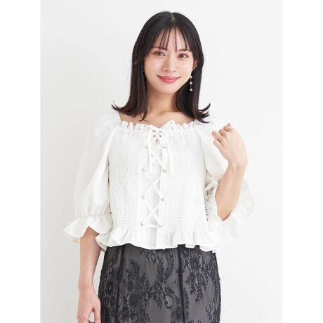 レースアップデザインがフェミニンで甘さをプラスしてくれるトップス