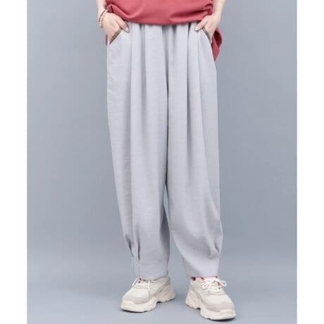 とろっと落ちるレーヨン素材が、動くたびに表情をつくるエッグタックパンツ