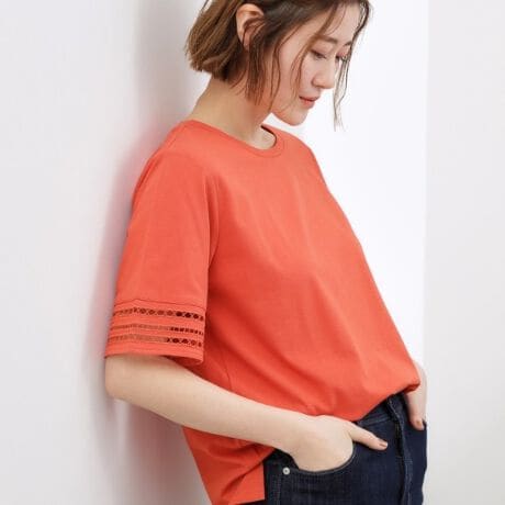 袖口透かし刺繍Tシャツ