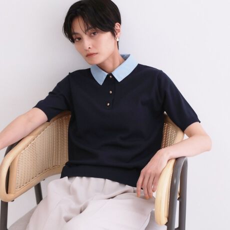 2WAY衿付きニット【洗濯機OK】