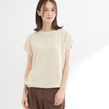 さらっとした肌触りの素材を畦編みに仕立てた、表情豊かなニットトップス。