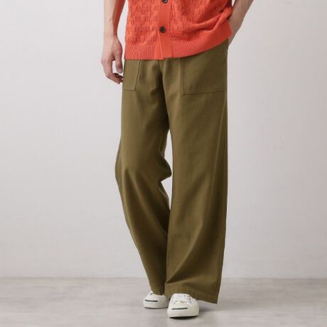 表面に表情のあるツイル素材を使用したミリタリーコットンパンツ。