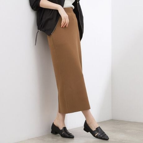 総針編みで仕立てた、きれいなラインが魅力のニットナロースカート。