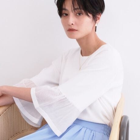 上品なシアーフレアスリーブデザインにトレンド感をプラスしたニットプルオーバー