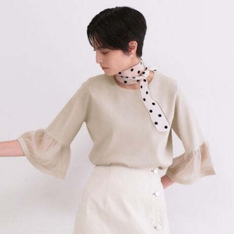 上品なシアーフレアスリーブデザインにトレンド感をプラスしたニットプルオーバー