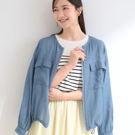 さりげなくシアー感のあるしなやかなデニムが新鮮なデニムブルゾン。