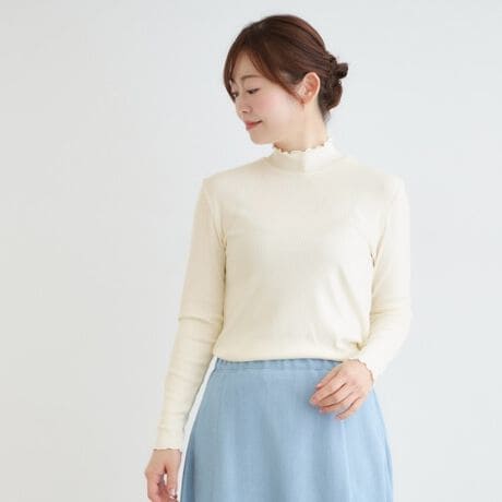 インナーにぴったりな薄手の素材感で、やわらかくチクチクしにくいのが嬉しいポイント。