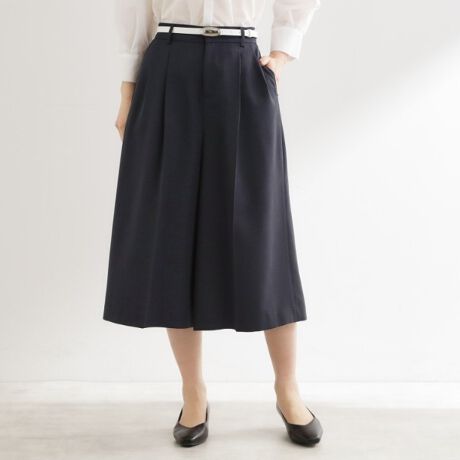 すっきりとしたジャストウエストデザインに、膝下丈のワイドシルエットが新鮮な印象のキュロットミディパンツ。
