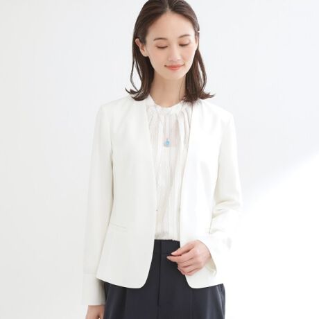 すっきりとしたシルエットが魅力のノーカラージャケット。