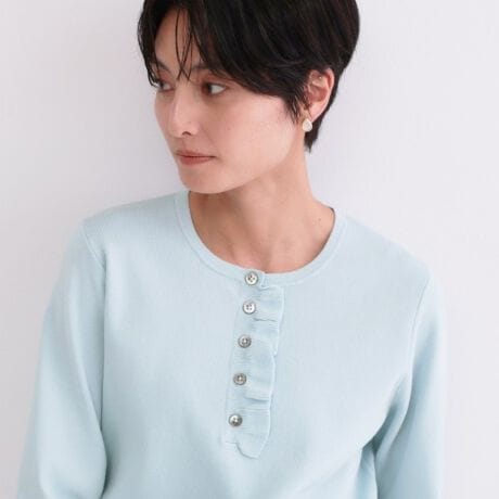 フリルヘンリーネックニット【洗濯機OK抗ピル】