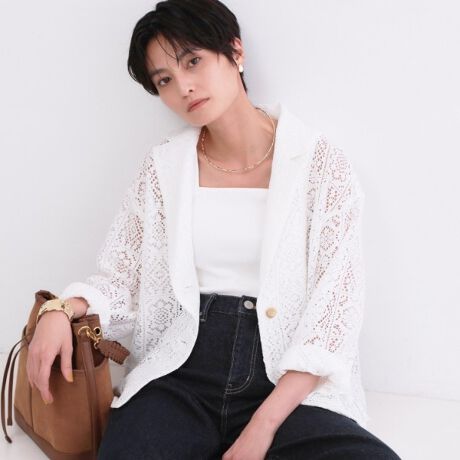 ・抜け感のあるレース素材で、さらっと羽織れる軽い着心地のテーラードジャケットです。
