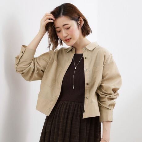 羽織としてTシャツやワンピースに重ねたり、同素材のスカート(768−75005)とセットアップでワンピース見えするスタイルも楽しめます。