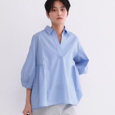 スキッパーペプラムブラウス【洗濯機OK】