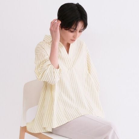 ・顔まわりがすっきりと見え、着こなしが決まるスキッパーデザインがポイント。