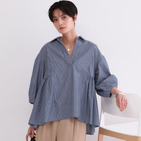 スキッパーペプラムブラウス【洗濯機OK】