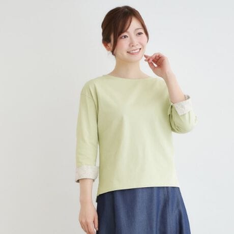 前年も好評だったデザインの継続アイテムで、袖はそのままでシンプルに、折り返して見返しをのぞかせてと2種類の着方ができるデザインです。