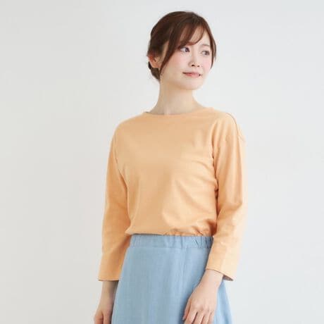 ボートネックのすっきりとした衿元がデコルテを美しく見せます。