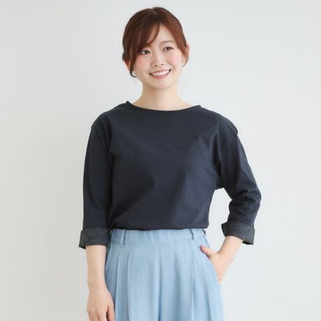 前年も好評だったデザインの継続アイテムで、袖はそのままでシンプルに、折り返して見返しをのぞかせてと2種類の着方ができるデザインです。