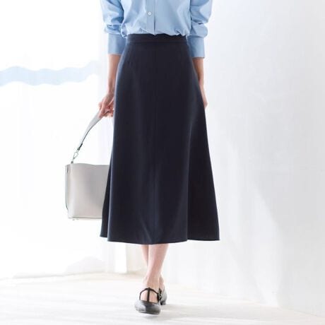 腰まわりはすっきりと、裾に向かってほどよく広がるシルエットで動くたびに柔らかなドレープが生まれます。