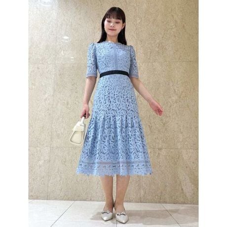 フラワーモチーフを繰り返し、はしごレースをあしらったCELFORD定番のレースワンピース。